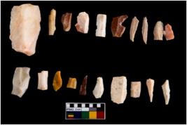 | Description / विवरण | There are n - 20 blades made from Chert. n - 6 blades are complete in shape .In these assemblage n - 1 blade is obliquely truncated blade crescent , n- 4 blades are points, n -1 blade is crescent. Rests are partially broken and devoid of any kind of backing or retouching. |