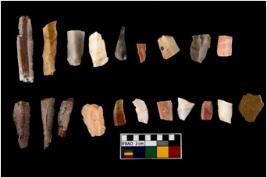 | Description / विवरण | There are n - 20 blades are made from Chert. Among these n -6 blades are complete in shape and n -3 blades are had been retouched. In these assemblage n -1 blade is obliquely truncated blade , n-1 blade is trapeze, and n - 3 blades are triangles.Rests are partially broken and devoid of any kind of retouching or backing. |