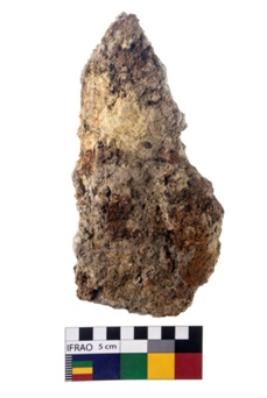 | Description / विवरण | A specimen of an iron nail with rounded top tapering towards the end. It is highly rusted |