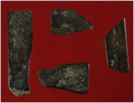| Description / विवरण | Trench YC 1, Qdt 1, pit 1 SB SH, depth 35-115 cms It s a razor made of bone and broken into four unequal pieces. Surface of all the pieces is smooth and appearance is thin and brown. |
