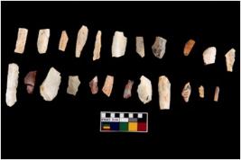| Description / विवरण | There are n - 23 blades made from Chert.Among these n -1 blade is complete in shape and n-1 blade is point.Retouch had been done over n - 3 blade.Rests are partially broken and devoid of any kind of retouching and backing. |
