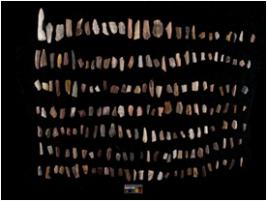 | Description / विवरण | There are n 190 of microliths. All of them are Chert. Some of them are partially broken. They show variation in colour, size and shape. Some of them are blunted back baldes, points, triangles, trapezes, crescent and truncated blades. |