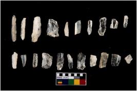 | Description / विवरण | There are n - 20 blades made from Quartz. n - 3 blades are complete in shape. n-1 blade is trapeze and n-2 blades are point.Rests are partially broken and devoid of any kind of retouching and backing |