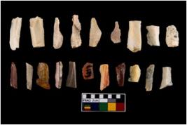 | Description / विवरण | There are n - 20 blades made from Chert.Among these n - 1 blade is complete in shape. In this set n -1 blade is triangle Rests are partially broken and devoid of any kind of retouching and backing |