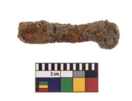 | Description / विवरण | Partially broken specimen of a cylindrical shaped iron rod with a rounded end |