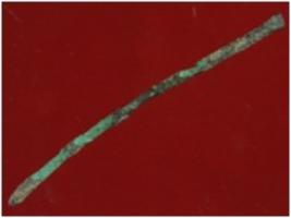 | Description / विवरण | Trench YC 1, Qdt 4, pit 3 SB SH, depth 35-68 cms It s a wire made of copper. Patina is present all over it. Appearance is thin and greenish. |