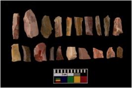 | Description / विवरण | A set of 20 number intact microlithic blades, made up of chert. All these blades have retouched and sharp edges. |
