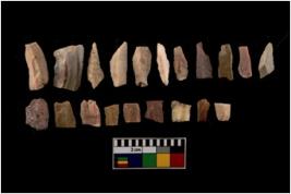 | Description / विवरण | A set of 20 number intact microlithic blades, made up of chert. All these blades have retouched and sharp edges. |