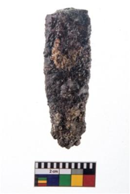 | Description / विवरण | A partially broken specimen of iron point. It is rusted. |
