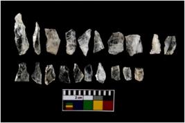 | Description / विवरण | A set of 20 number intact microlithic blades, made up of quartz. All these blades have retouched and sharp edges. |
