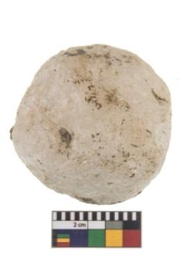 | Description / विवरण | Complete specimen of a circular shaped hammer stone with battered surface made up from quartz. |