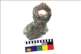 | Description / विवरण | Broken bell fragment of bronze, upper portion of holding bell is intact other than that is not broken. |