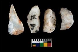| Description / विवरण | There are n-4 of intact cores made up of Chalcedony. There are multidirectional irregular dominant scar pattern on both dorsal and ventral face of the cores. |