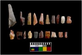 | Description / विवरण | A set of 20 intact microlithic blades, made up of chert. All these blades have retouched and sharp edges. |