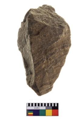 | Description / विवरण | Side scraper of quartzite with sharp working edge. |