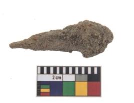 | Description / विवरण | Complete specimen of an iron nail with conical shape, rounded butt and pointed end. |