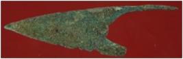 | Description / विवरण | Trench YA 3 Qdt 4, layer 1, depth 8.55-16 cms It is a broken arrow head made of copper. Surface is rough and shape is uneven. Patina is present. |
