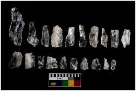 | Description / विवरण | A set of 20 intact microlithic blades, made up of quartz. All these blades have retouched and sharp edges. |