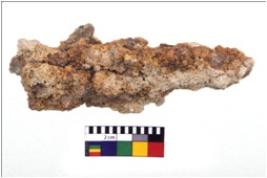 | Description / विवरण | Broken, with peculiar shape, highly corroded, |