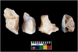 | Description / विवरण | There are n-4 of intact cores made up of Chalcedony. There are multidirectional irregular dominant scar pattern on both dorsal and ventral face of the cores. |