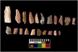 | Description / विवरण | A set of 20 intact microlithic blades, made up of chert. All these blades have retouched and sharp edges. |