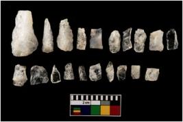 | Description / विवरण | A set of 20 intact microlithic blades, made up of quartz. All these blades have retouched and sharp edges. |