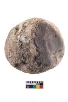 | Description / विवरण | A partially broken specimen of roughly round shaped hammer stone with battered periphery along with the circumference |