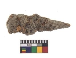 | Description / विवरण | Complete specimen of an iron nail with rounded back and projectile end |