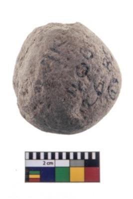 | Description / विवरण | A partially broken specimen of roughly round shaped hammer stone with battered periphery along with the circumference |