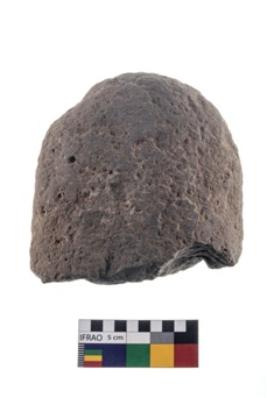 | Description / विवरण | A partially broken specimen of an oval shaped rubber stone with oval section and concave end. |