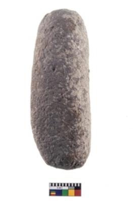 | Description / विवरण | A Partially broken specimen of a cylindrical shaped pounder stone with battered surfaced and truncated end to hold the object. |