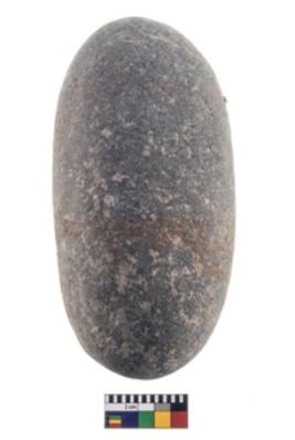 | Description / विवरण | A Partially broken specimen of a cylindrical shaped pounder stone with battered surfaced and truncated end to hold the object. |