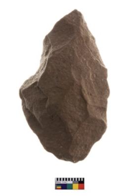 | Description / विवरण | Pear shaped hand axe. Both sides have flake marks. |