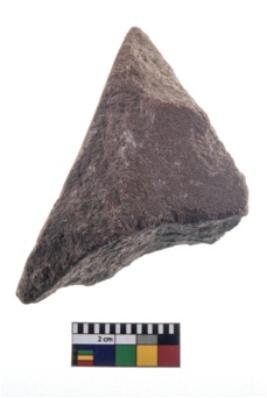 | Description / विवरण | A partially Broken specimen of triangular shaped polisher.It is made of sandstone. It is having smooth surface ehreas other side is rough . |