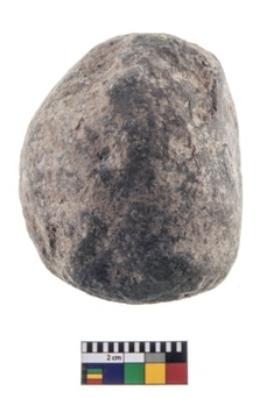 | Description / विवरण | A partially broken specimen of roughly round shaped hammer stone with battered periphery along with the circumference |