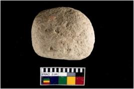 | Description / विवरण | Oblong hammer stone. One edge has been flattened due to use. |