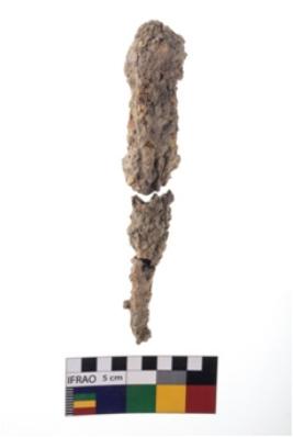 | Description / विवरण | A partially broken specimen of iron nail. It is rusted. |