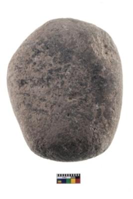 | Description / विवरण | A partially broken specimen of an oval shaped rubber stone with oval section and concave end. |
