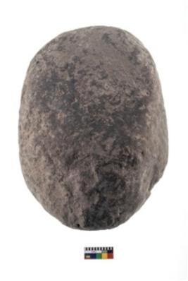 | Description / विवरण | A partially broken specimen of an oval shaped rubber stone with oval section and concave end. |