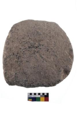 | Description / विवरण | A partially broken specimen of a roughly rectangular shaped Grinding stone with oval section. |