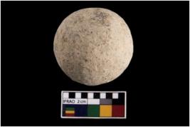 | Description / विवरण | A complete specimen of a round shaped sling ball made up from sandstone. |