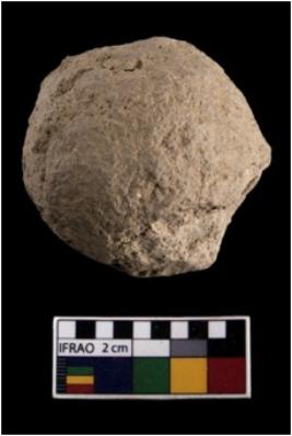 | Description / विवरण | A partially Broken specimen of a round shaped sling ball made up from quartz. |