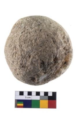 | Description / विवरण | A partially broken specimen of roughly round shaped hammer stone with battered periphery along with the circumference |