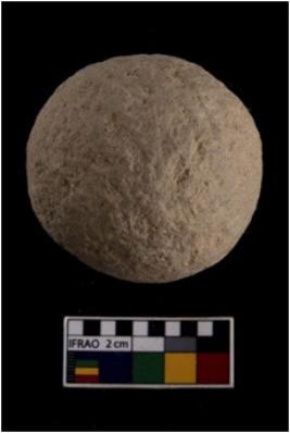 | Description / विवरण | A complete specimen of a round shaped slingball made up from quartz. |