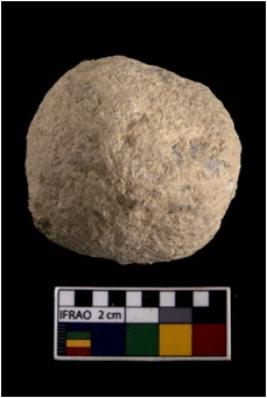 | Description / विवरण | A complete specimen of a spherical shaped slingball made up from quartz. |