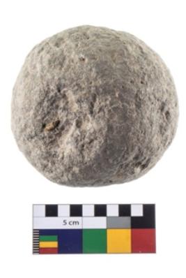 | Description / विवरण | A partially broken specimen of roughly round shaped hammer stone with battered periphery along with the circumference |