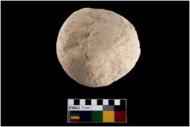 | Description / विवरण | A complete specimen of a pecked muller stone. It is made up from Quartz |