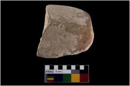 | Description / विवरण | A partially broken specimen of a oval shaped muller stone with oval section and concave end which is slightly tappered. |