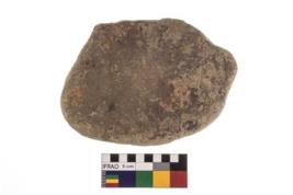 | Description / विवरण | A partially broken specimen of a oval shaped sharpner with a smooth surface, made up from sandstone. It contains a pitted section with rounded edge |