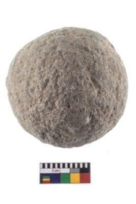 | Description / विवरण | A partially broken specimen of stone sling ball, It is roughly rounded shaped and small in size,with smooth surface. |